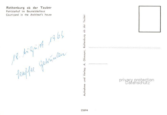 72969783 Rothenburg Tauber Patrizierhaud im Baumeisterhaus postalisch nicht gelaufen Erhaltung siehe scans [LiesaD40] KatCode: 11110009571193