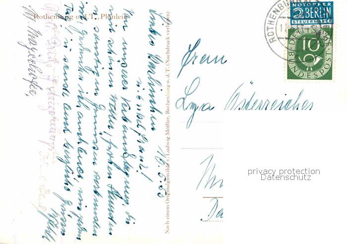 72776402 alte Postkarte Rothenburg Tauber Ploenlein postalisch gelaufen Erhaltung siehe scans [KathaD81] KatCode: 11110009571193