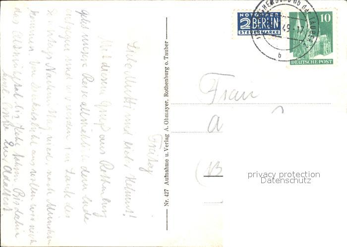 72394163 alte Postkarte Rothenburg Tauber Ploenlein postalisch gelaufen Erhaltung siehe scans KatCode: 11110009571193