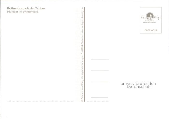 72377684 Rothenburg Tauber Ploenlein im Winterkleid postalisch nicht gelaufen Erhaltung siehe scans KatCode: 11110009571193