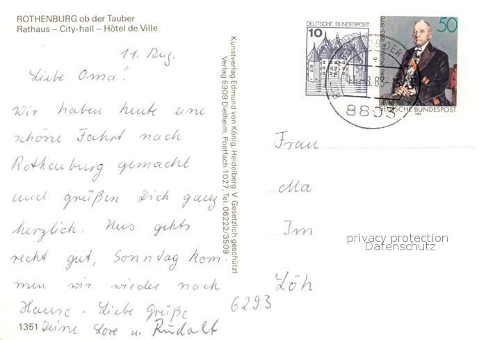 72999704 alte Postkarte Rothenburg Tauber Rathaus postalisch gelaufen Erhaltung siehe scans [AndreD76] KatCode: 11110009571193
