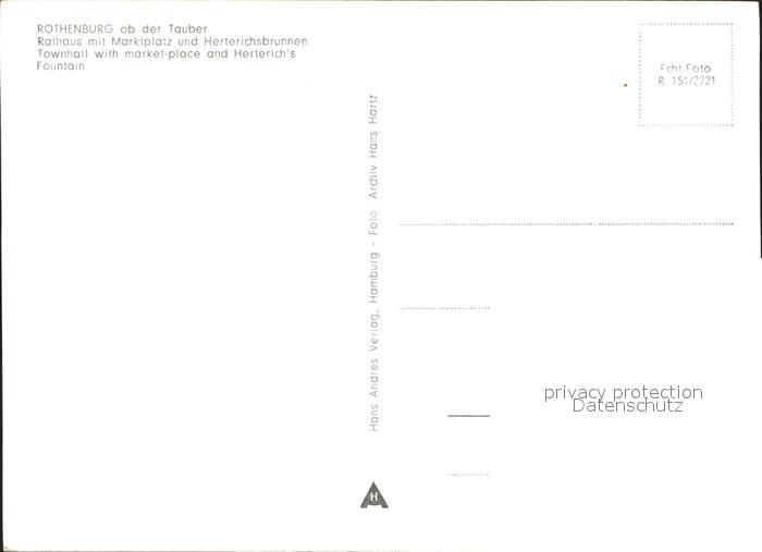 72196202 Rothenburg Tauber Rathaus mit Marktplatz und Herterichsbrunnen postalisch nicht gelaufen Erhaltung siehe scans KatCode: 11110009571193