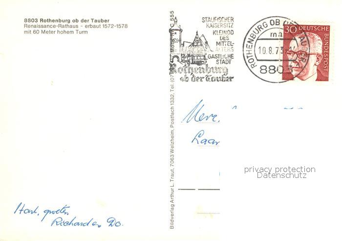 72941354 alte Postkarte Rothenburg Tauber Renaissance-Rathaus postalisch gelaufen Erhaltung siehe scans [PaolaD17] KatCode: 11110009571193