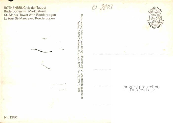 72692804 Rothenburg Tauber Roederbogen mit Markusturm postalisch nicht gelaufen Erhaltung siehe scans [FriedD77] KatCode: 11110009571193