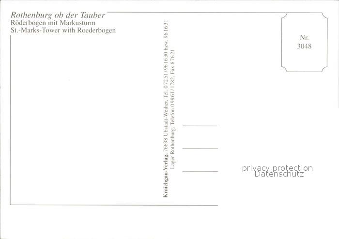 72449369 Rothenburg Tauber Roederbogen mit Markusturm postalisch nicht gelaufen Erhaltung siehe scans KatCode: 11110009571193