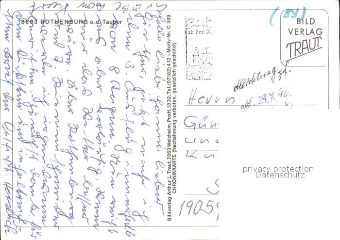 72310592 alte Postkarte Rothenburg Tauber Roederbogen mit Markusturm Rataus Gerlach Schmiede Das Ploenlein postalisch gelaufen Erhaltung siehe scans KatCode: 11110009571193