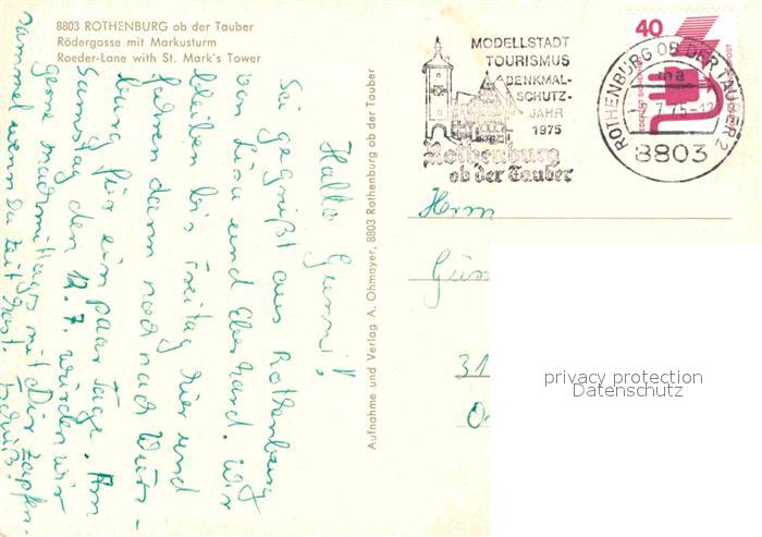 72756274 alte Postkarte Rothenburg Tauber Roedergasse mit Markusturm postalisch gelaufen Erhaltung siehe scans [LiesaD40] KatCode: 11110009571193