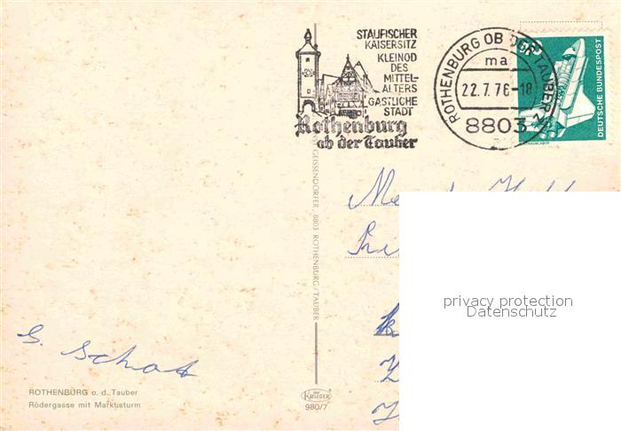 72655100 alte Postkarte Rothenburg Tauber Roedergasse mit Markusturm postalisch gelaufen Erhaltung siehe scans [LiesaD40] KatCode: 11110009571193