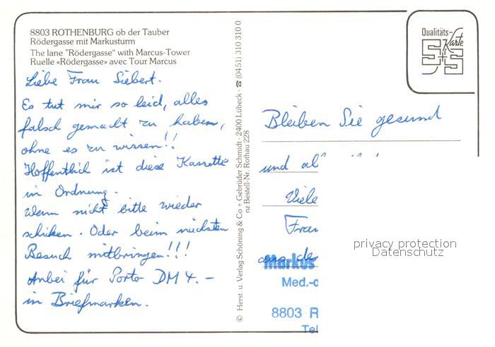 72970285 Rothenburg Tauber Roedergasse mit Markusturm Brunnen Altstadt postalisch nicht gelaufen Erhaltung siehe scans [FriedD77] KatCode: 11110009571193