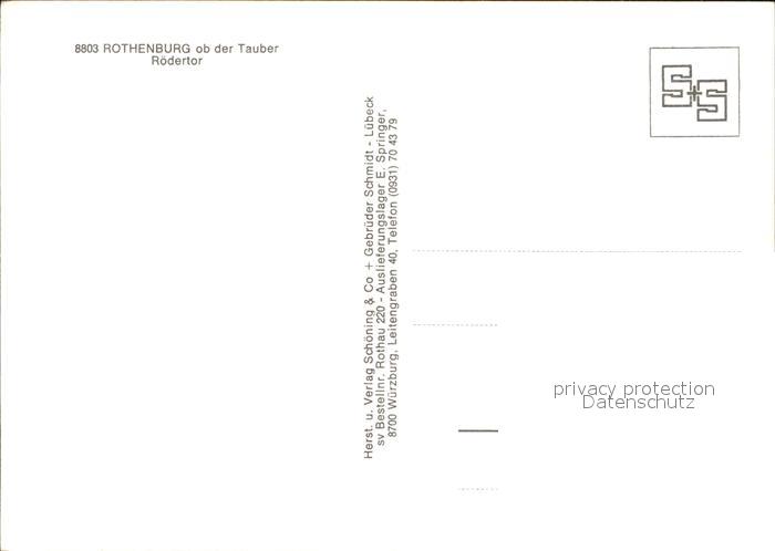 72505531 Rothenburg Tauber Roedertor postalisch nicht gelaufen Erhaltung siehe scans KatCode: 11110009571193