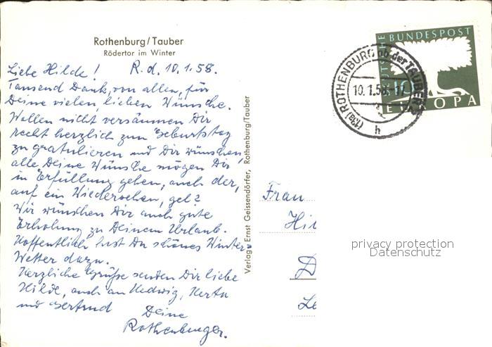 72412929 alte Postkarte Rothenburg Tauber Roedertor Winter postalisch gelaufen Erhaltung siehe scans KatCode: 11110009571193