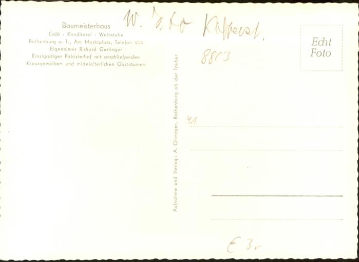 40921070 Rothenburg Tauber Rothenburg Baumeisterhaus Weinstube Konditorei KatCode 11110009571193