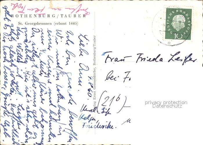72472300 alte Postkarte Rothenburg Tauber St. Georgsbrunnen postalisch gelaufen Erhaltung siehe scans KatCode: 11110009571193