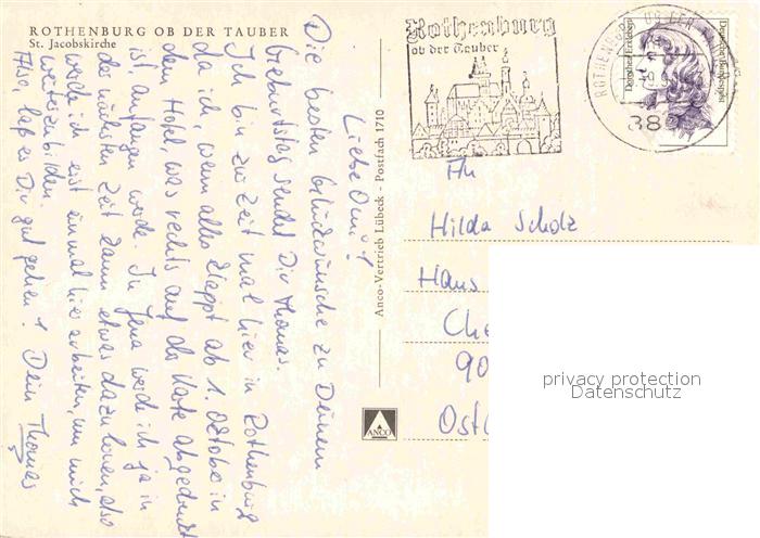 72885520 alte Postkarte Rothenburg Tauber St Jakobskirche postalisch gelaufen Erhaltung siehe scans [FriedD77] KatCode: 11110009571193