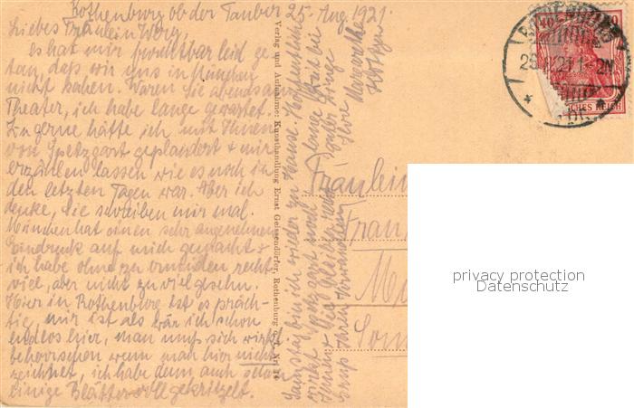 73777285 alte Postkarte Rothenburg Tauber Stadtkirchnerwohnung postalisch gelaufen Erhaltung siehe scans [FriedD77] KatCode: 11110009571193