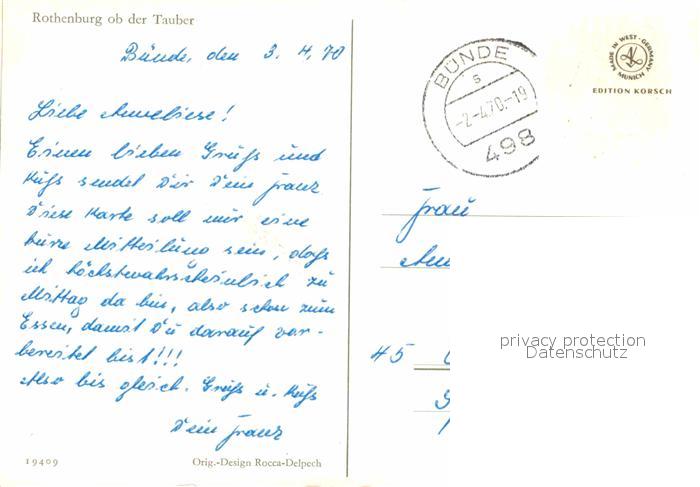 72884205 alte Postkarte Rothenburg Tauber Stadtmotiv Illustration postalisch gelaufen Erhaltung siehe scans [WerneD78] KatCode: 11110009571193