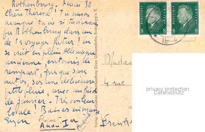 72813809 alte Postkarte Rothenburg Tauber Teilansicht postalisch gelaufen Erhaltung siehe scans [AndreD76] KatCode: 11110009571193