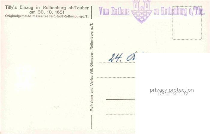 72897545 Rothenburg Tauber Tilly’s Einzug 30.10.1631 postalisch nicht gelaufen Erhaltung siehe scans [PaolaD17] KatCode: 11110009571193