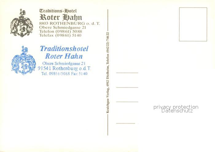73646125 Rothenburg Tauber Traditionshotel Roter Hahn Rezeption Zimmer postalisch nicht gelaufen Erhaltung siehe scans [WerneD78] KatCode: 11110009571193