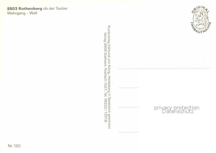 72860056 Rothenburg Tauber Wehrgang Wall postalisch nicht gelaufen Erhaltung siehe scans [FriedD77] KatCode: 11110009571193