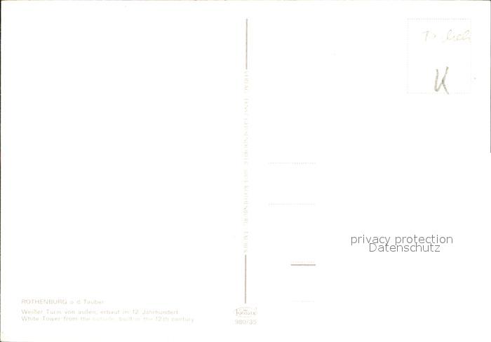 72573556 Rothenburg Tauber Weisser Turm postalisch nicht gelaufen Erhaltung siehe scans [KathaD79] KatCode: 11110009571193