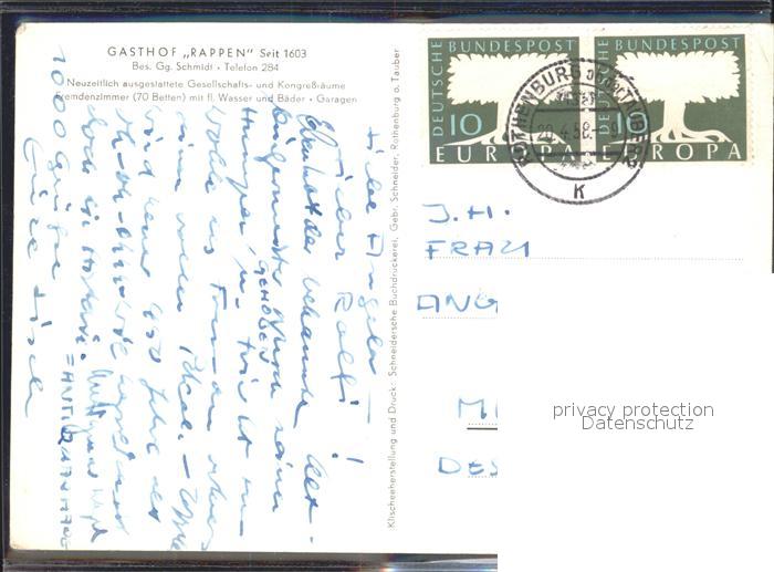 72151682 alte Postkarte Rothenburg Tauber Wuerzburger Tor Galgenturm mit Gasthof zum Rappen postalisch gelaufen Erhaltung siehe scans KatCode: 11110009571193
