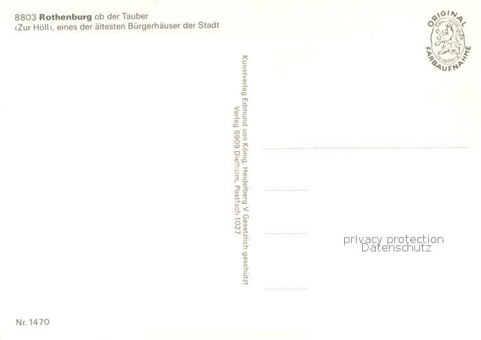 73654858 Rothenburg Tauber Zur Hoell eines der aeltesten Buergerhaeuser der Stadt postalisch nicht gelaufen Erhaltung siehe scans [WerneD78] KatCode: 11110009571193