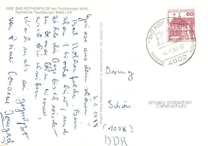 73166119 alte Postkarte Rothenfelde Bad Fachklinik Teutoburger Wald postalisch gelaufen Erhaltung siehe scans [KathaD81] KatCode: 11110003459006