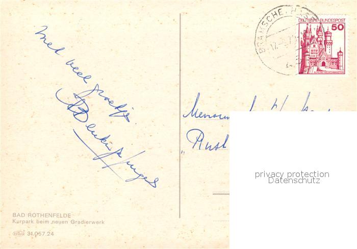 73047746 alte Postkarte Rothenfelde Bad Kurpark Gradierwerk postalisch gelaufen Erhaltung siehe scans [KathaD81] KatCode: 11110003459006
