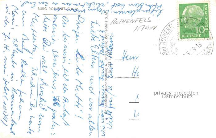 74121718 alte Postkarte Rothenfels Main Unterfranken Main-Spessart Bayern Blick zur Burg postalisch gelaufen Erhaltung siehe scans [FriedD77] KatCode: 11110009677181