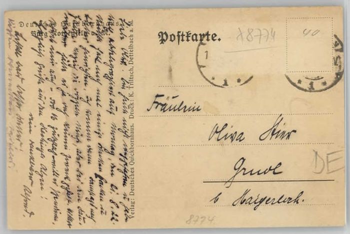 40243356 Rothenfels Unterfranken Burg KuenstlerH. Lorenz postalisch gelaufen Alte Ansichtskarte Postkarte alte Postkarte Katcode 11110009677181
