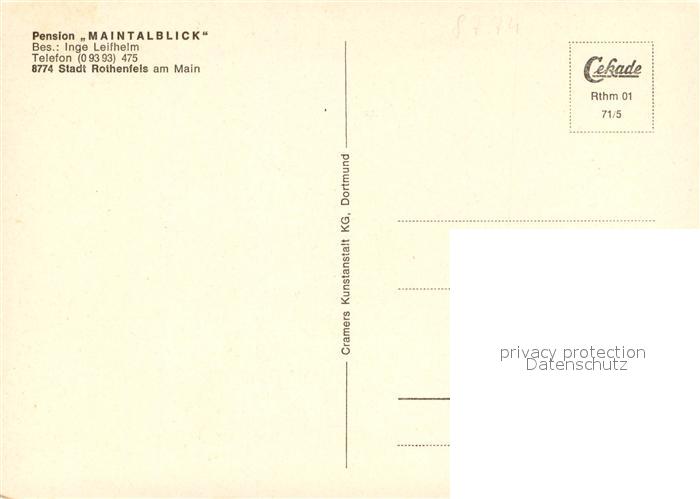 73646297 Rothenfels Unterfranken Pension Maintalblick Gaststube Terrasse Wildgehege Mainpartie postalisch nicht gelaufen Erhaltung siehe scans [WerneD78] KatCode: 11110009677181