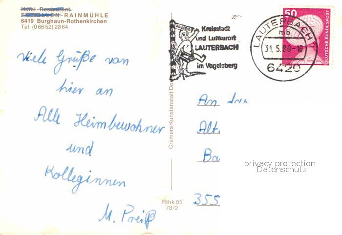 72930560 alte Postkarte Rothenkirchen Huenfeld Hotel Restaurant Rainmuehle postalisch gelaufen Erhaltung siehe scans [FriedD77] KatCode: 11110006631002