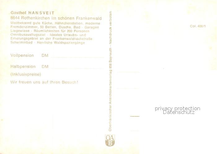 73734133 Rothenkirchen Oberfranken Gasthof Hansveit postalisch nicht gelaufen Erhaltung siehe scans [LiesaD40] KatCode: 11110009476164