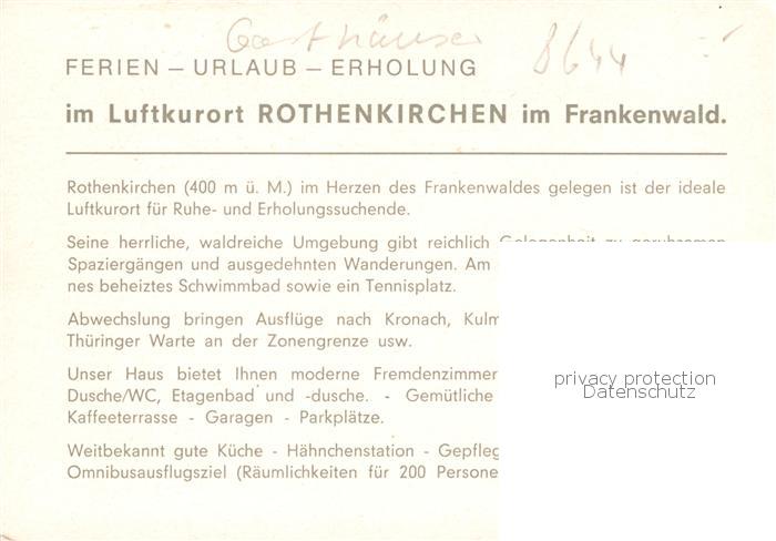 73863312 Rothenkirchen Oberfranken Gasthof Luftkurort postalisch nicht gelaufen Werbekarte (keine Postkarte) Erhaltung siehe scans [FriedD77] KatCode: 11110009476164