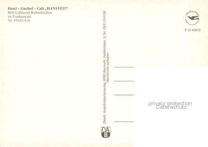 73759361 Rothenkirchen Oberfranken Hotel Gasthof Hansveit Gastraeume postalisch nicht gelaufen Erhaltung siehe scans [FriedD77] KatCode: 11110009476164