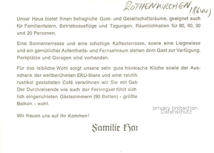 73544846 Rothenkirchen Oberfranken Hotel Gasthof Hansveit Restaurant Fremdenzimmer postalisch nicht gelaufen Werbekarte (keine Postkarte) Erhaltung siehe scans [FriedD77] KatCode: 11110009476164