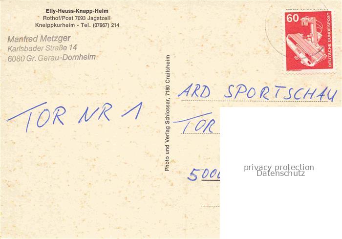 74084680 alte Postkarte Rothof Jagstzell BW Elly Heuss Knapp Heim postalisch gelaufen Erhaltung siehe scans [WerneD78] KatCode: 11110008136035