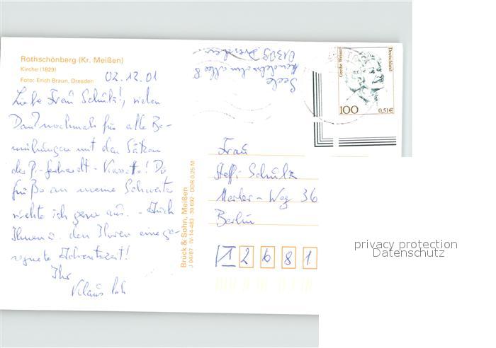 71900540 alte Postkarte Rothschoenberg Kirche postalisch gelaufen Erhaltung siehe scans KatCode: 11110014280400