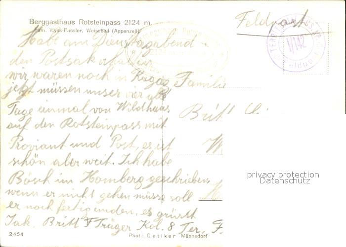 11637113 alte Postkarte Rotsteinpass Berggasthaus Rotsteinpass postalisch gelaufen Erhaltung siehe scans KatCode: 11470280015796