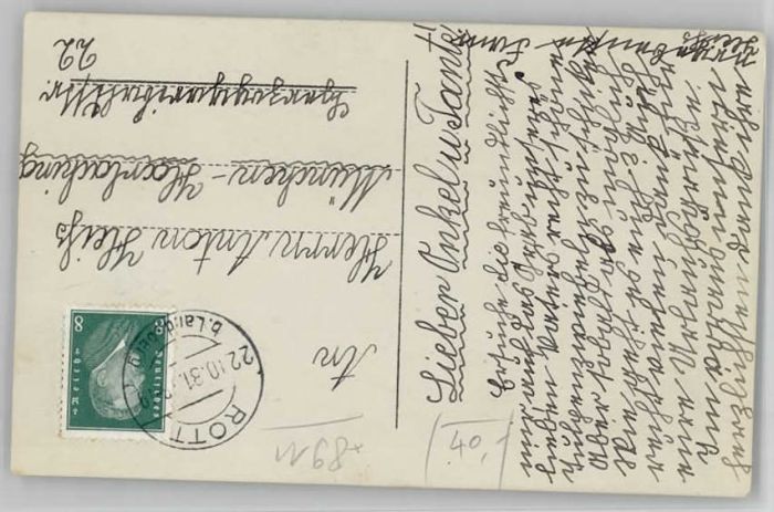 40244606 alte Postkarte Rott [Stempelabschlag] postalisch gelaufen KatCode: