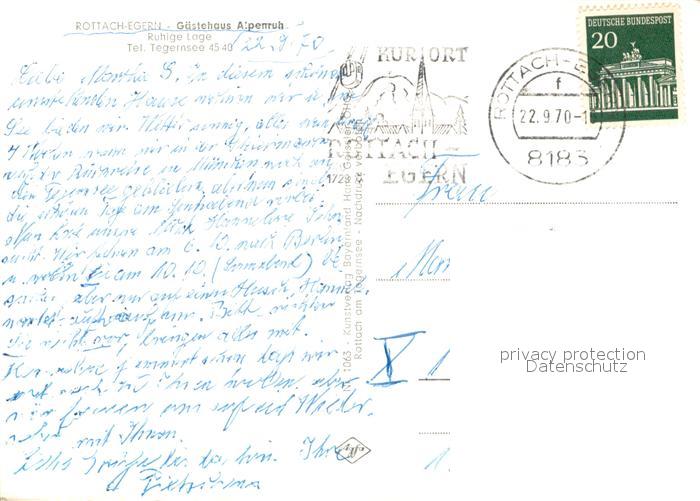 73650947 alte Postkarte Rottach-Egern am Tegernsee mit Gaestehaus Alpenruh postalisch gelaufen Erhaltung siehe scans [WerneD78] KatCode: 11110009182129