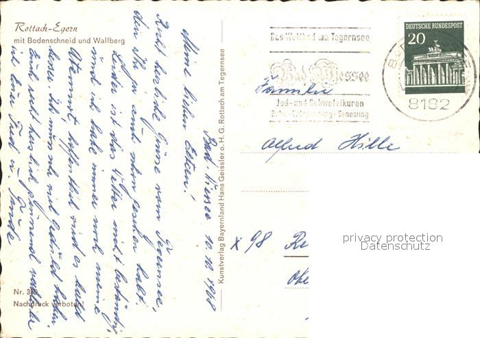 72368018 alte Postkarte Rottach-Egern Ansicht vom Tegernsee aus Segeln Bodenscheid und Wallberg Bayerische Voralpen postalisch gelaufen Erhaltung siehe scans KatCode: 11110009182129