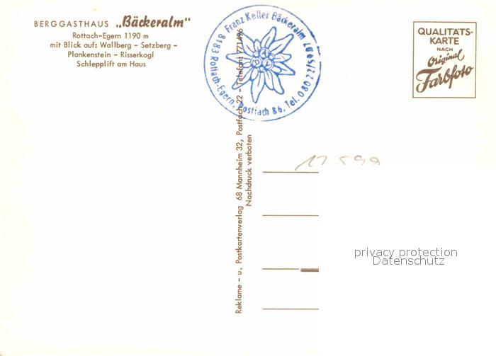 72913713 Rottach-Egern Berggasthaus Baeckeralm postalisch nicht gelaufen Erhaltung siehe scans [LiesaD40] KatCode: 11110009182129