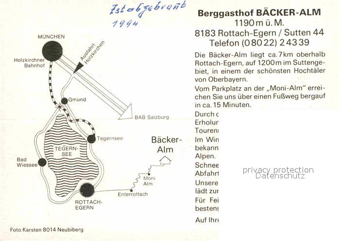 72828695 Rottach-Egern Berggasthof Baecker-Alm postalisch nicht gelaufen Werbekarte (keine Postkarte) Erhaltung siehe scans [NatalD47] KatCode: 11110009182129