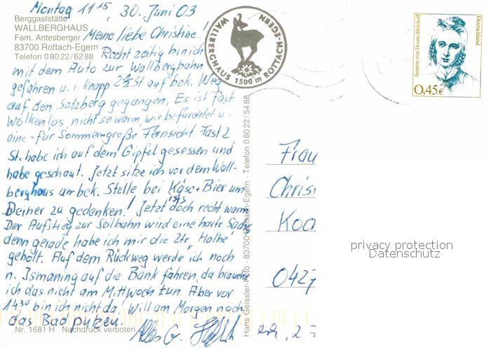 72752446 alte Postkarte Rottach-Egern Berggaststaette Wallberghaus am Setzberg Alpenpanorama mit Guffert und Karwendelgebirge Fliegeraufnahme postalisch gelaufen Erhaltung siehe scans [FriedD77] KatCode: 11110009182129