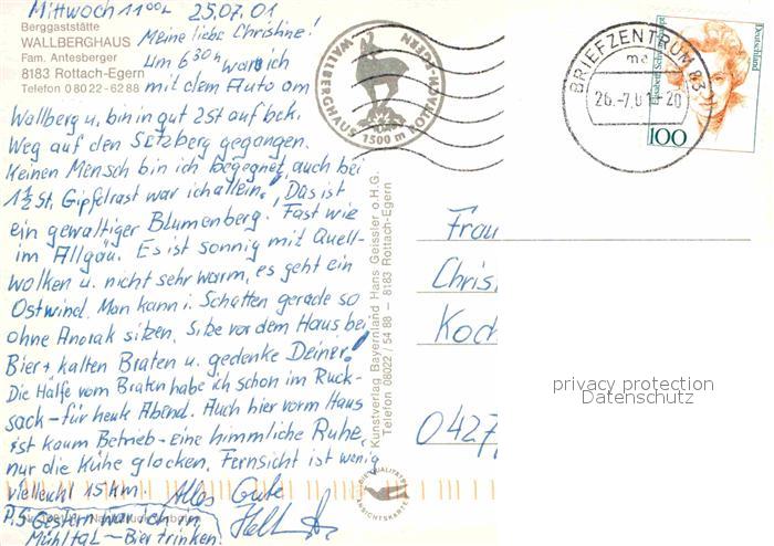 72750426 alte Postkarte Rottach-Egern Berggaststaette Wallberghaus Panorama Blick zum Karwendelgebirge postalisch gelaufen Erhaltung siehe scans [FriedD77] KatCode: 11110009182129