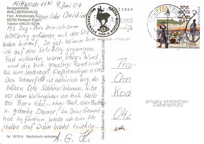 72753306 alte Postkarte Rottach-Egern Berggaststaette Wallberghaus postalisch gelaufen Erhaltung siehe scans [FriedD77] KatCode: 11110009182129