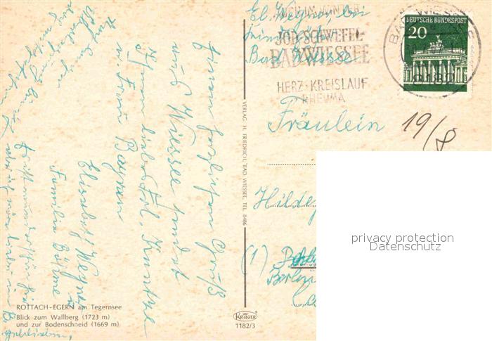 72751804 alte Postkarte Rottach-Egern Blick zum Wallberg und zur Bodenschneid Ausflugsdampfer Tegernsee postalisch gelaufen Erhaltung siehe scans [FriedD77] KatCode: 11110009182129
