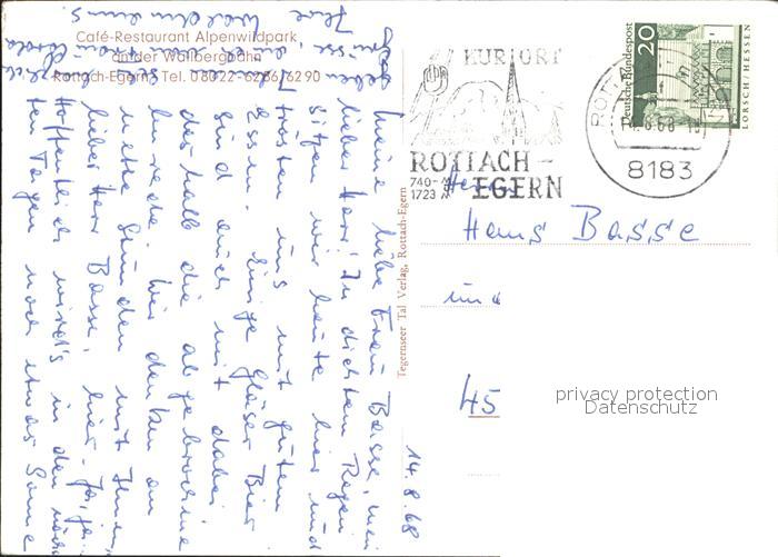 72016641 alte Postkarte Rottach-Egern Cafe Restaurant Alpenwildpark postalisch gelaufen Erhaltung siehe scans KatCode: 11110009182129